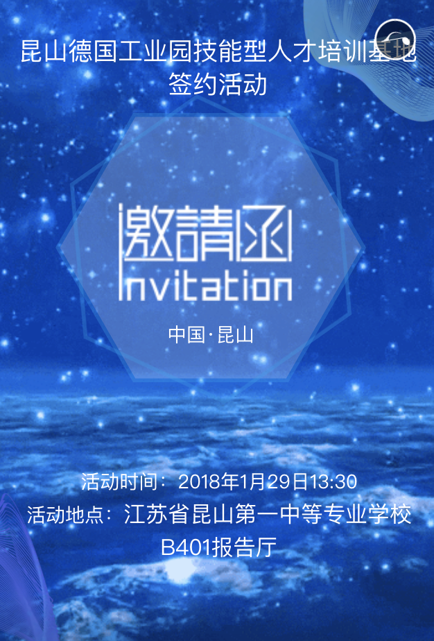 #### 活动内容 江苏省昆山第一中等专业学校关于昆山德国工业园技能型人才培训基地办学情况介绍昆山德国工业园企业代表发言德国工商大会上海代表处代表发言。  点击查看更多活动邀请函模板 https://store.eqxiu.com/?utm_id=10649&keywordid={keywordid}&utm_source=wps