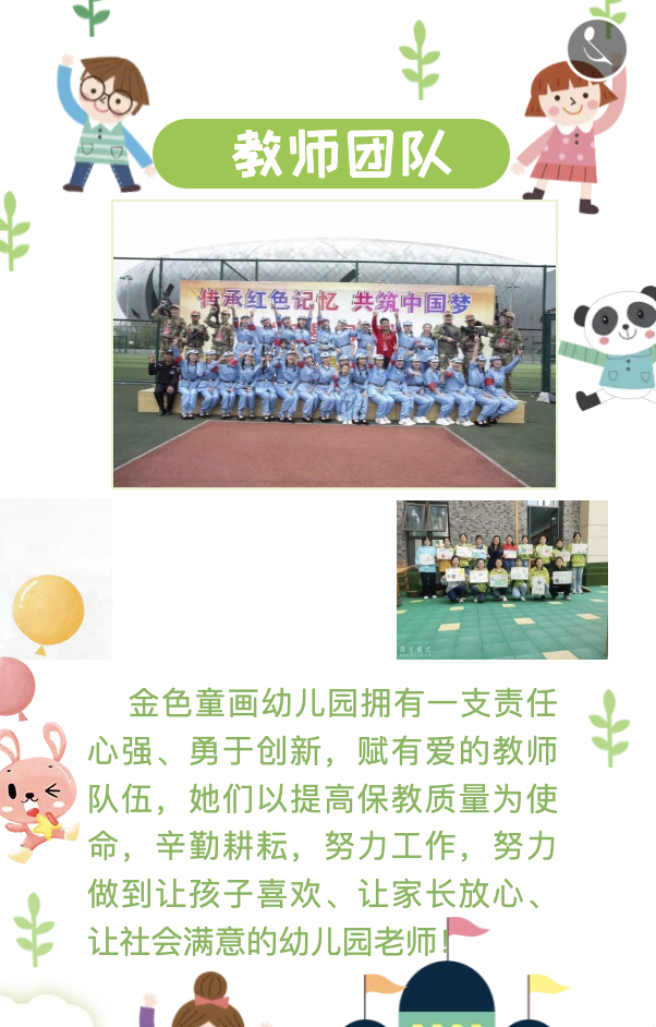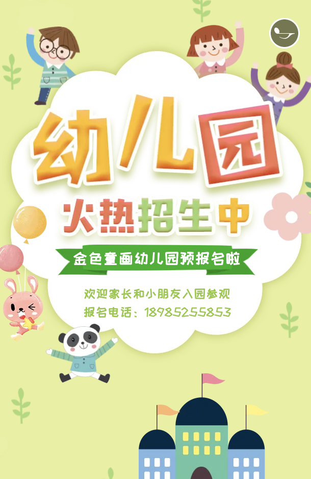 #### 尊敬的家长朋友们: 孩子是祖国和民族的未来,是家庭的希望,是父母的幸福源泉,关心孩子 的今天,就是关心家庭、社会的明天。幼儿园是孩子学校启蒙的开端,教育会影响孩子的一生,赢在快乐的起跑线上,幸福会伴随终生。给孩子们一个健康快乐的童年,奠定他们幸福、向阳的人生是我们金色童画幼儿园的追求和希望。我们会用我们的责任心、爱心,让家长放心,让孩子开心!愿新学期里能有您的参与,愿我们在这片凝聚爱、放飞希望的乐园携手同心,共同努力,让每一孩子都能拥有一个积极向上、坚韧、不怕困难的品质! #### 幼儿园简介: 新蒲新区金色童画幼儿园位于布洛克大街12栋,是一所全日制民办幼儿 园,现开设8个教学班,在岗教职工30人。是一所以幼儿的一日流程和幼儿发展阶段的成长目标为纬线、以多元化课程为体系,采用多媒体互动、生活实践与社会体验相结合等教育模式,让幼儿在体能体质、心理素质、兴趣爱好等方面得到综合发展,建立幼儿良好的行为习惯及品德意识,培养幼儿自理、自立及独立学习能力。我园有一支热爱幼教事业、工作经 验丰富的教师队伍。   点击浏览金色童画幼儿园招生宣传册 https://h5.eqxiu.com/ls/Q4jQB7sc 点击查看更多精美招生宣传模板 https://store.eqxiu.com/