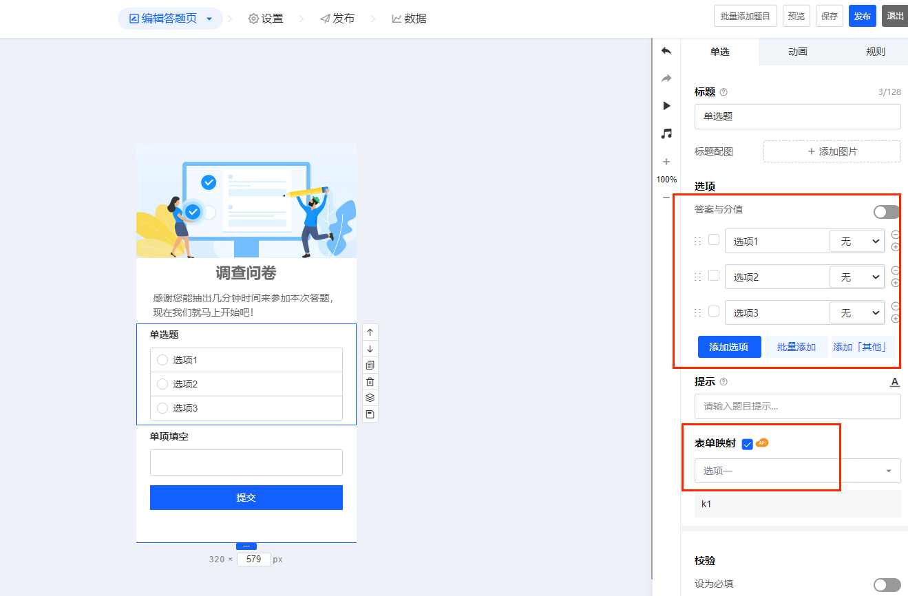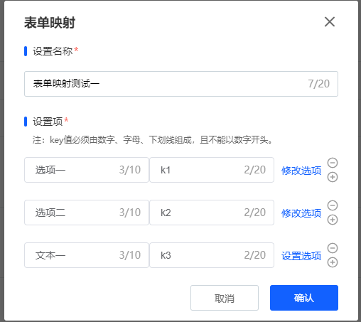 表单选项数据结构