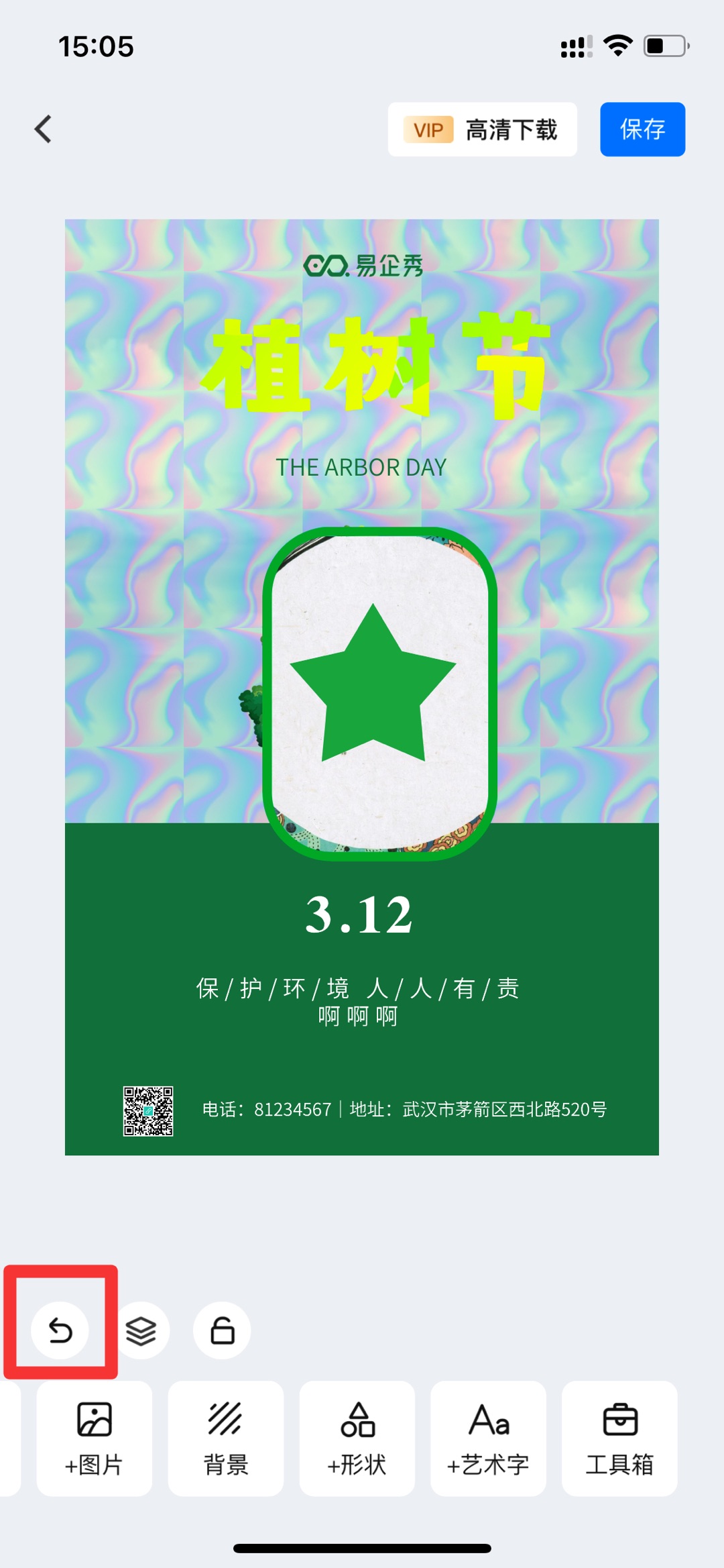 ### 撤回功能: 点击编辑器左下角箭头按钮即可对未保存的前一步操作进行撤回。  ### 复制元素: 选中一个元素后,选中框的左下角会出现一个“+1”按钮,点击后即可对当前元素进行复制。