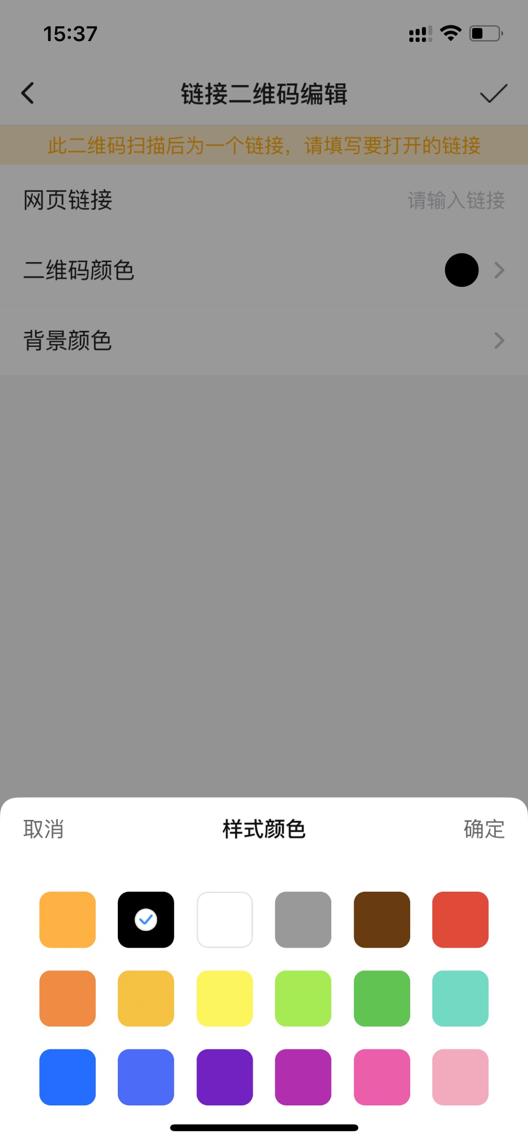 编辑器工具条向右划,点击“工具箱”,选择“+二维码”即可生成不同类型样式的二维码,点击选中的二维码进行编辑,输入跳转的链接,并且支持对二维码和背景的颜色进行调整。