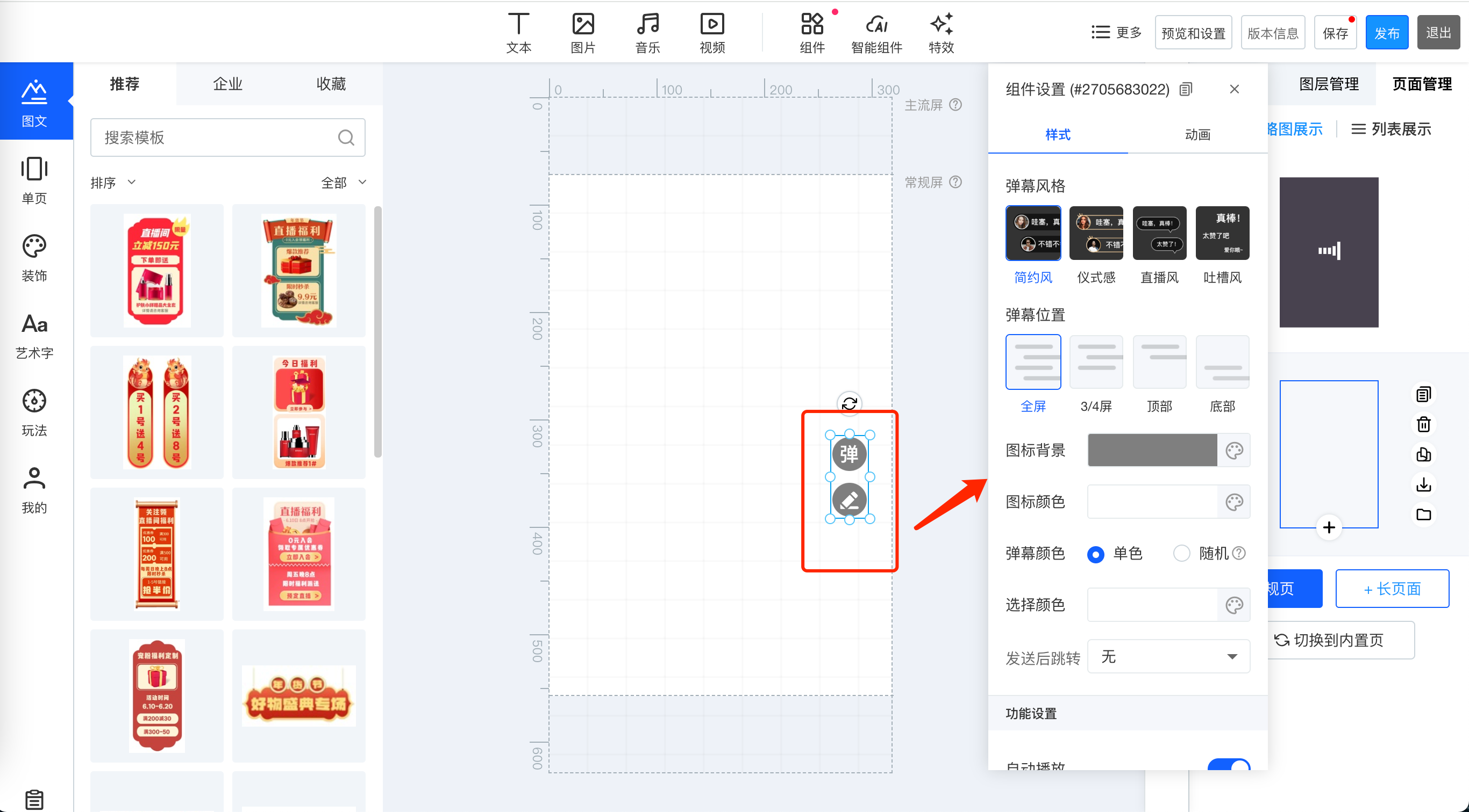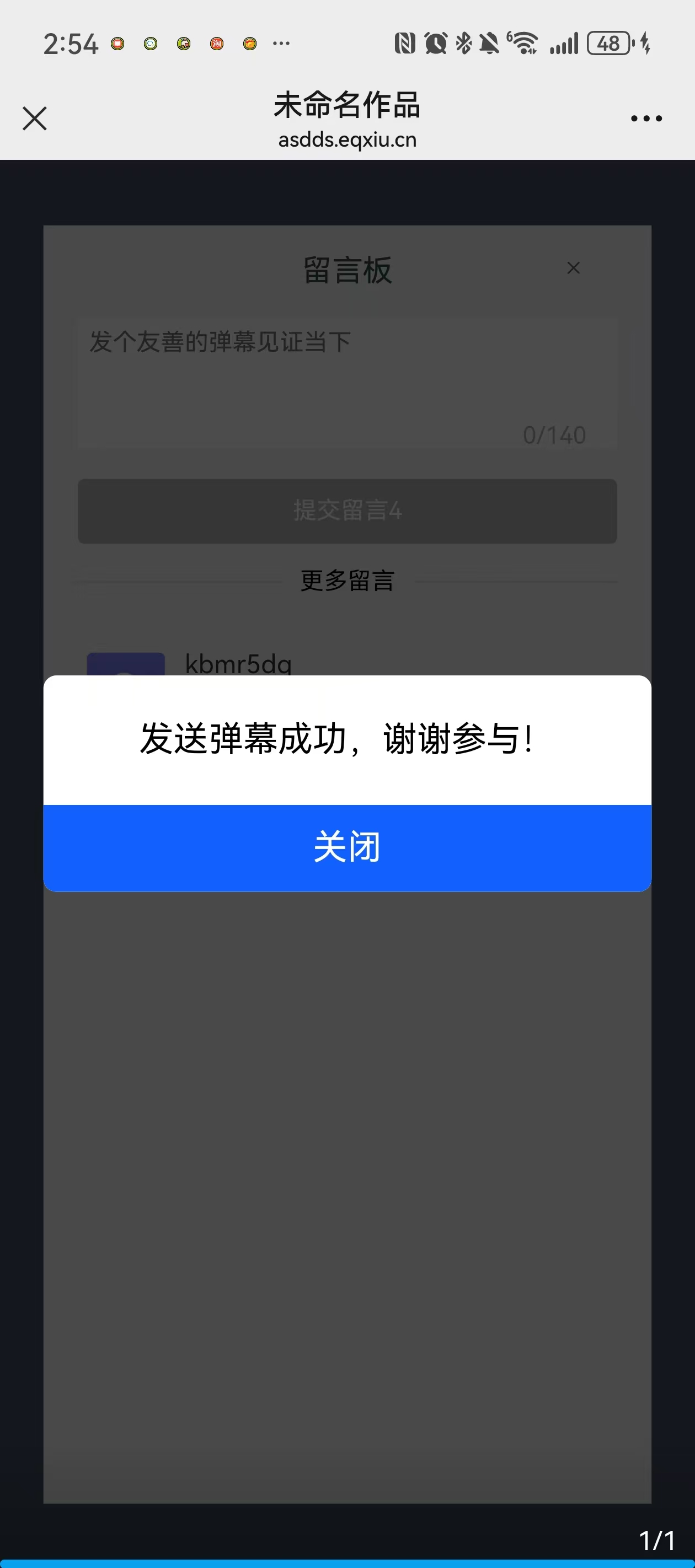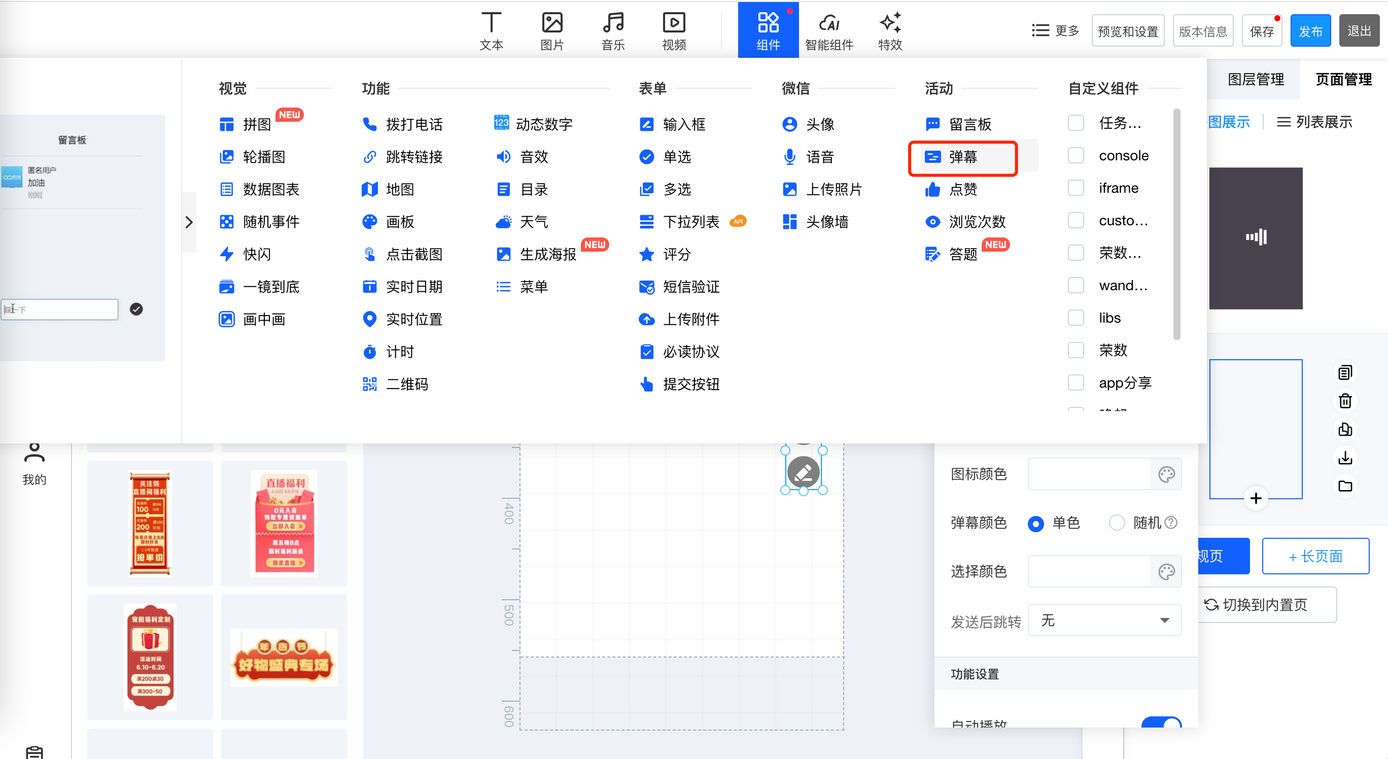 在H5作品中增加了弹幕功能,访客可点击发送弹幕。