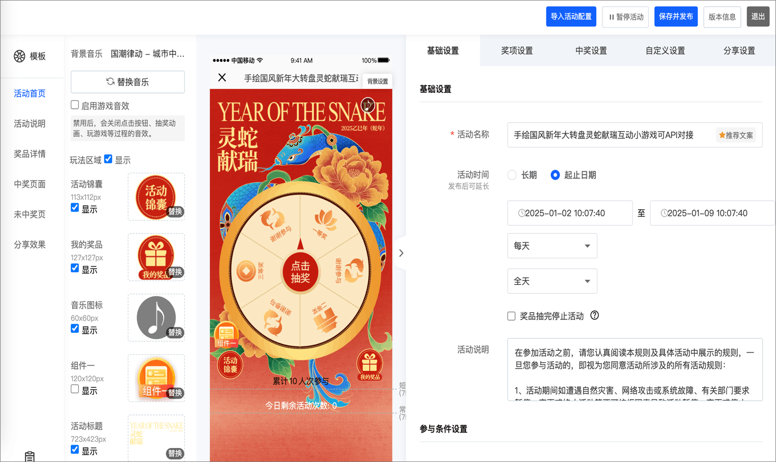 1、互动游戏+抽奖作品,不暂停的情况下,基础设置中的设置项全部可修改;(参考抽奖作品的基础设置);