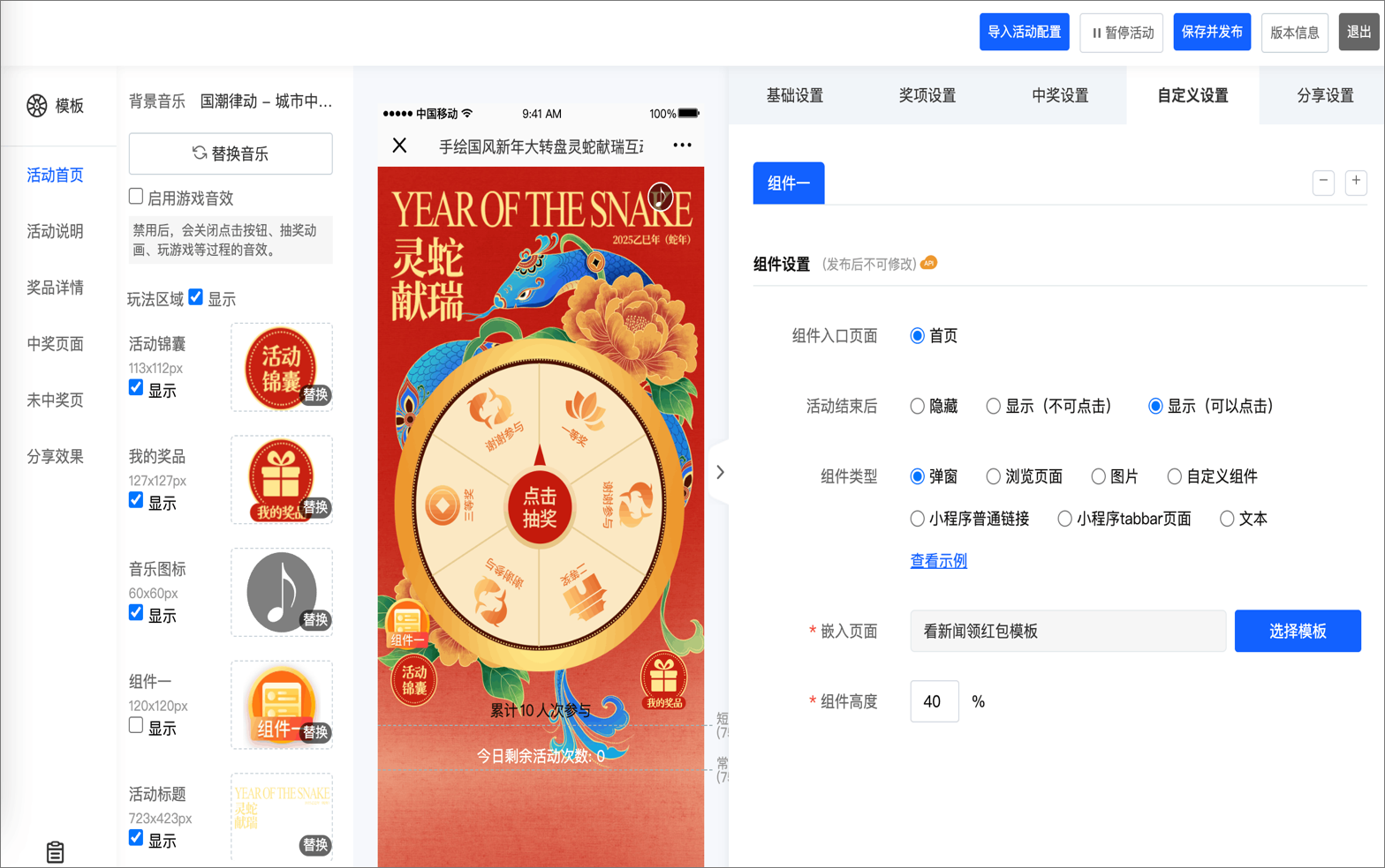 5、互动游戏+抽奖作品,不暂停的情况下,自定义设置均可修改;(参考抽奖作品)