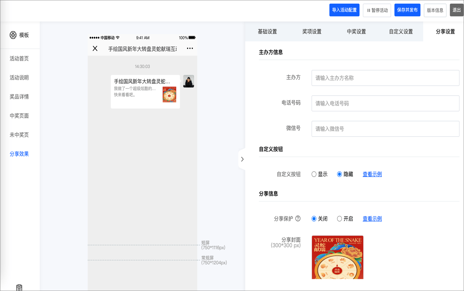 6、互动游戏+抽奖作品,不暂停的情况下,分享设置均可修改;(参考抽奖作品)