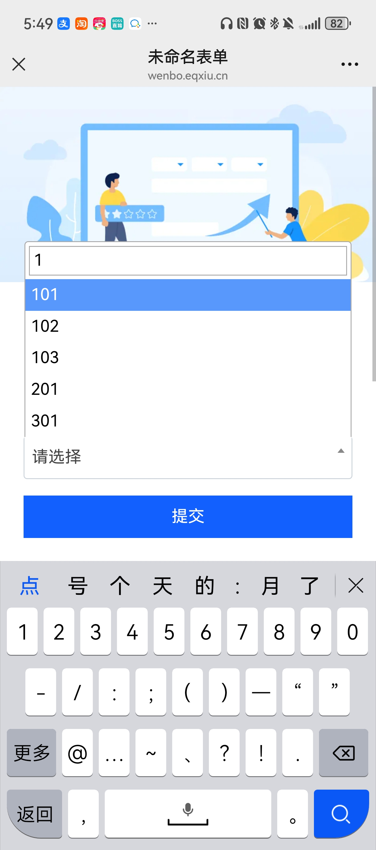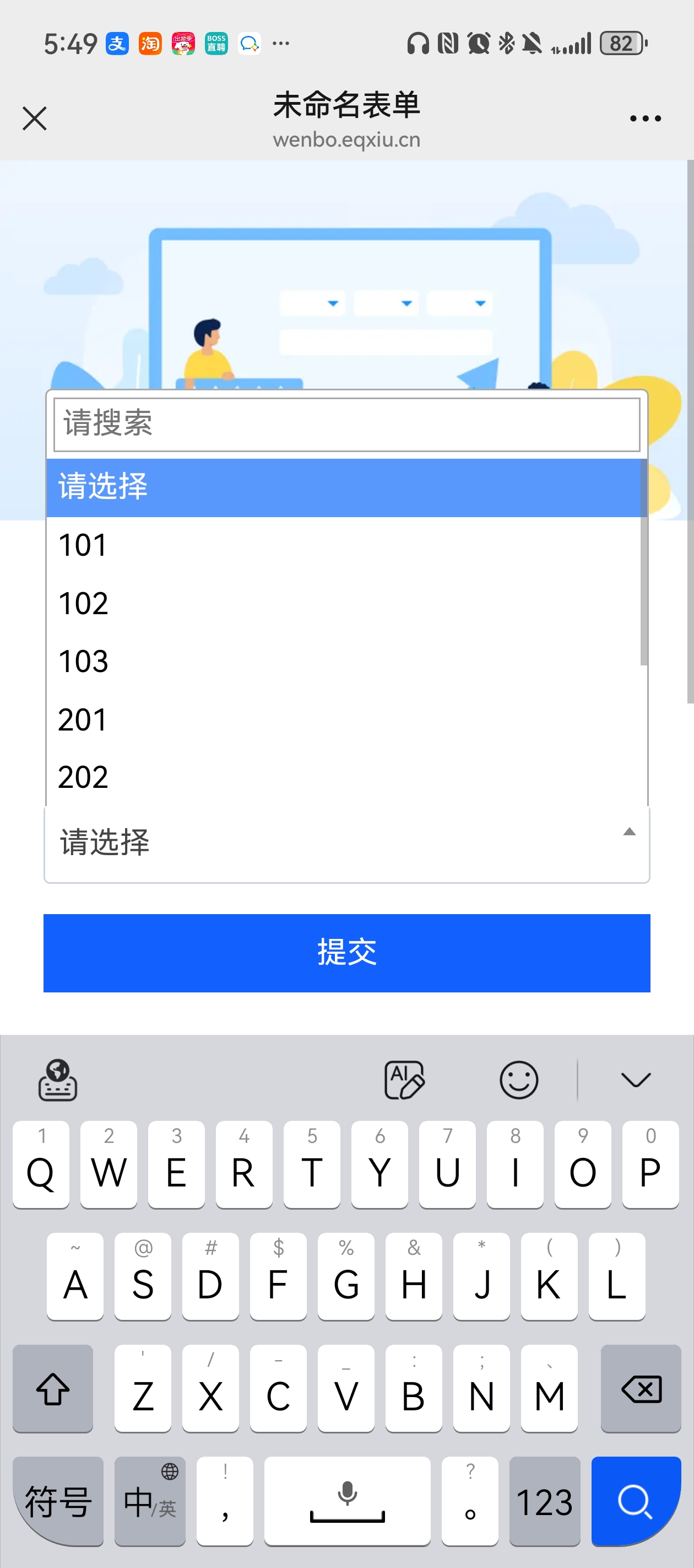 为了方便使用下拉选择题中的下拉选项特别多的用户,我们在表单编辑器中的下拉组件增加了搜索框,访客可以根据模糊搜索轻松找到选项。