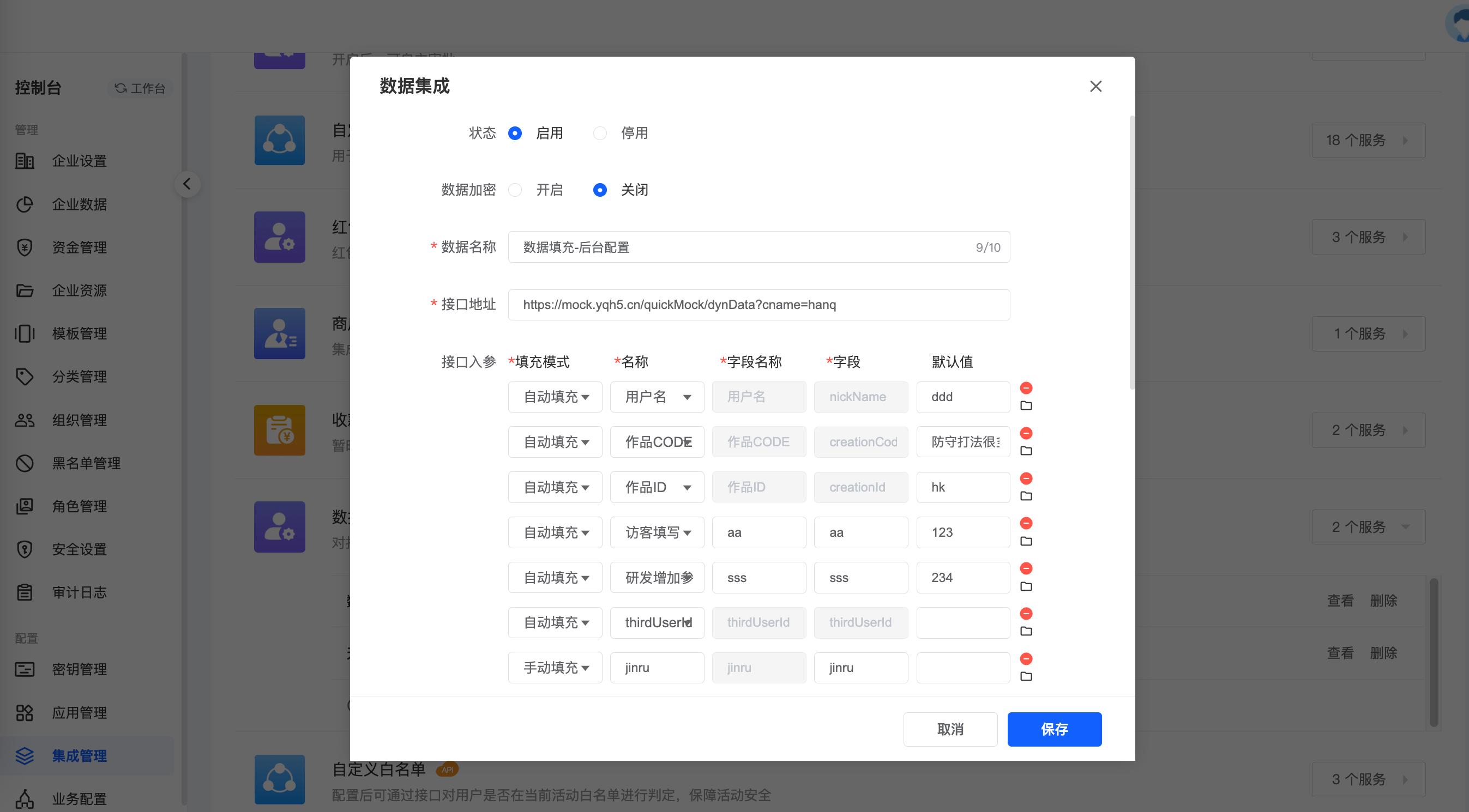 如果需要其他的列表,则需要在数据集成中配置相应的接口,如下: