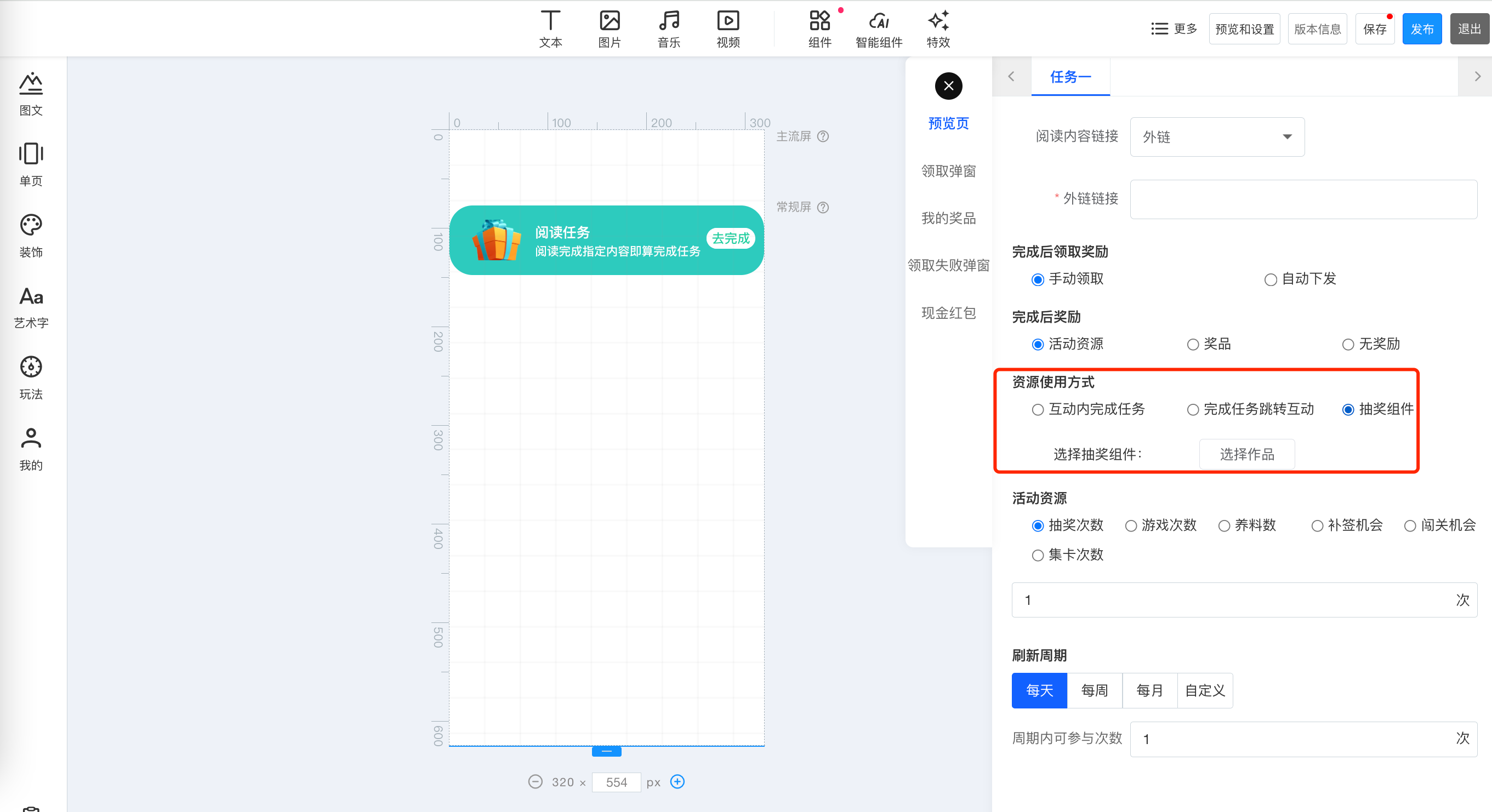 【功能上新-H5】H5任务组件新增可关联互动作品、H5抽奖组件