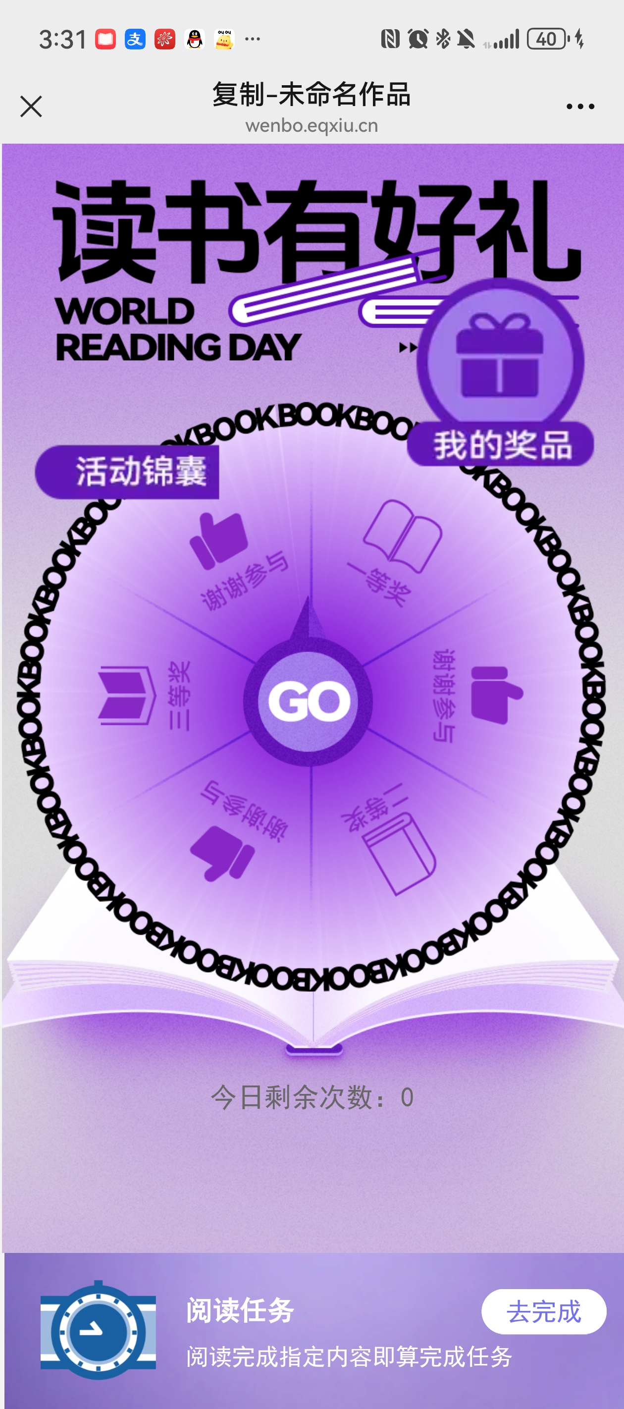 ①访客访问H5作品→②完成任务→③领取奖励(抽奖次数+1)→④点击去抽奖→⑤去抽奖作品抽奖