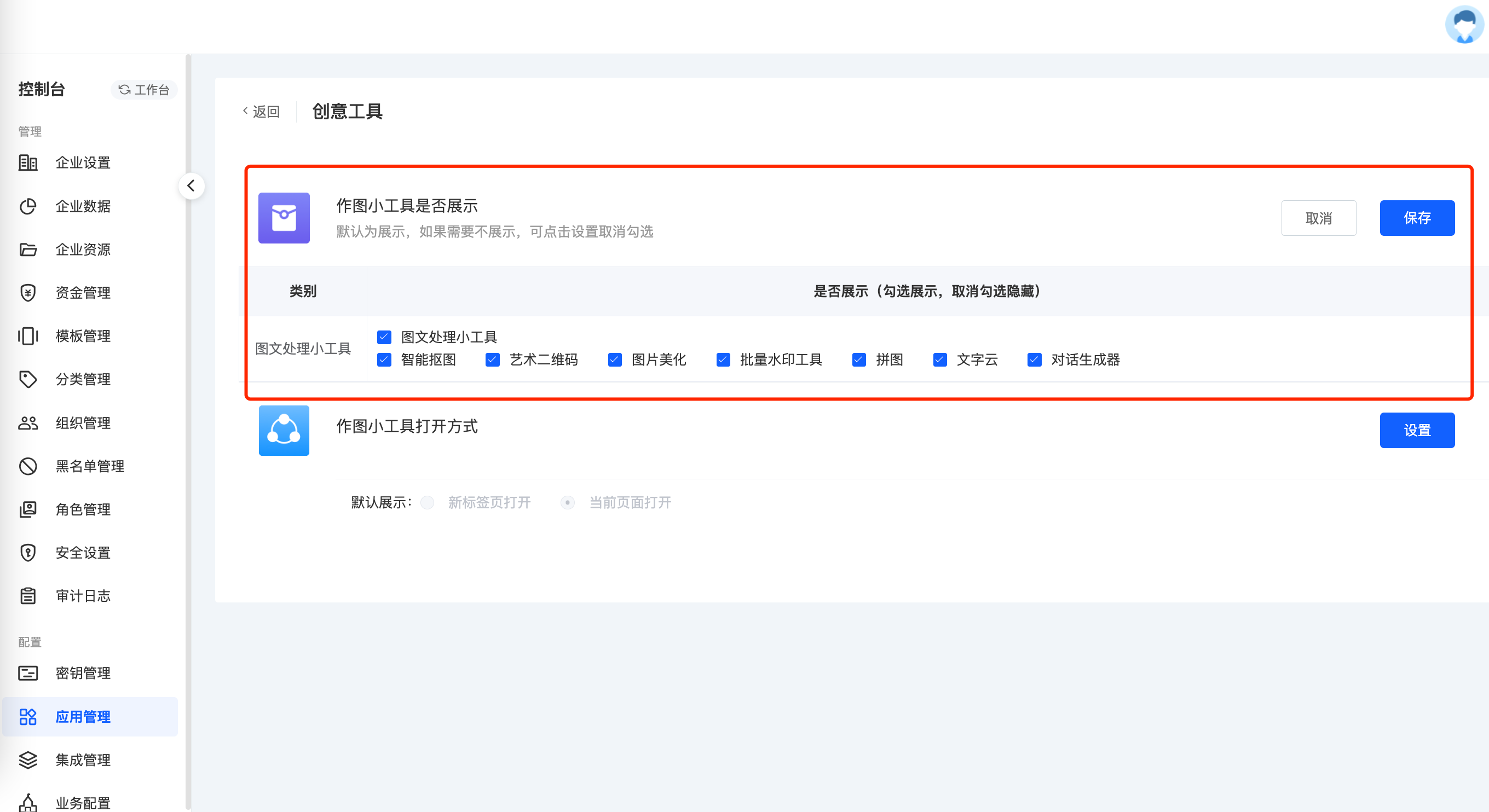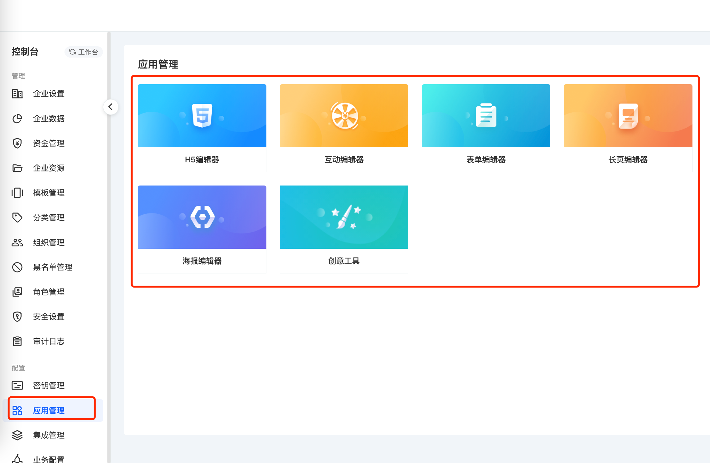 步骤①:应用管理-H5编辑器/互动编辑器/表单编辑器/长页编辑器/海报编辑器/创意小工具