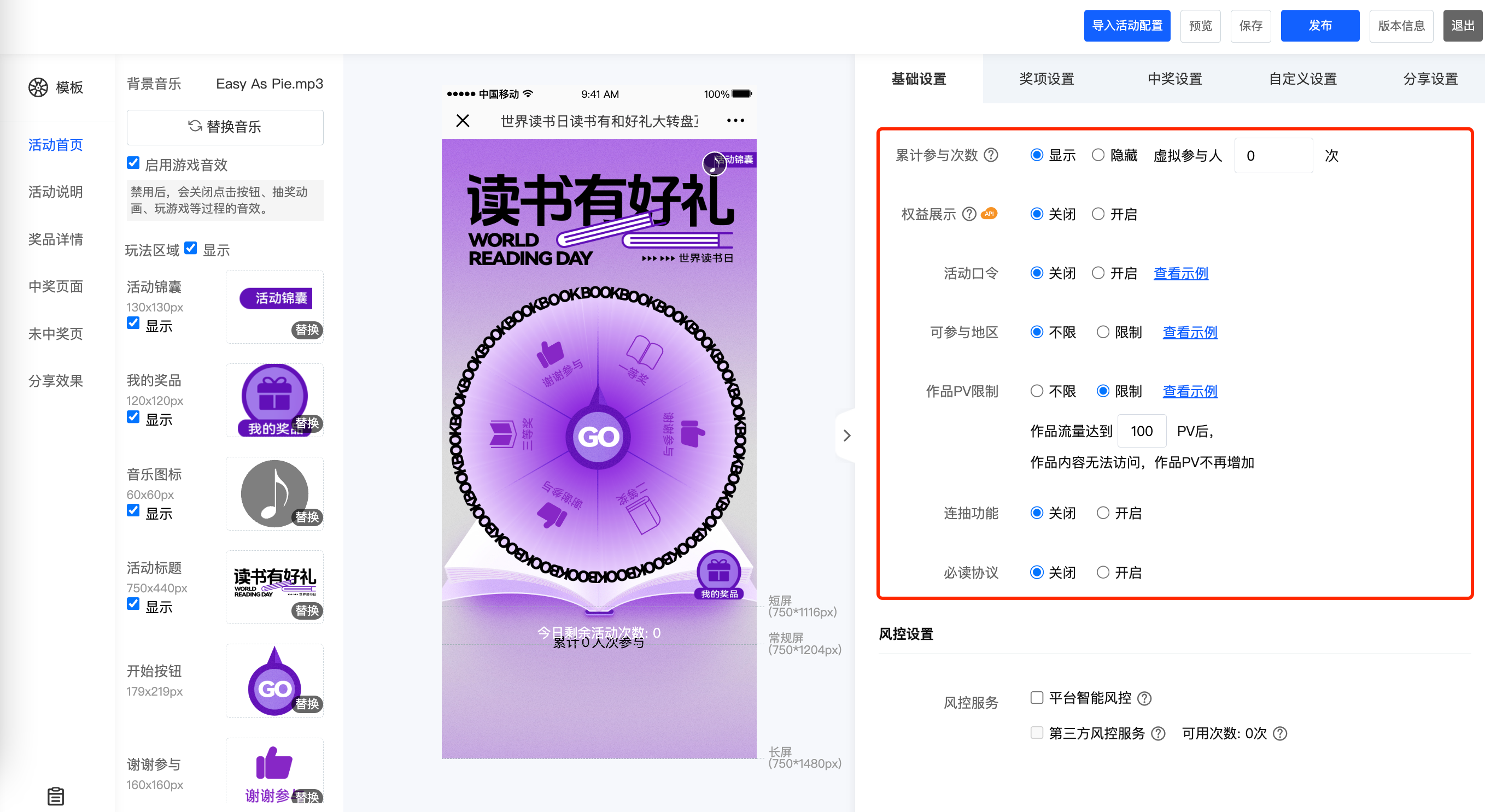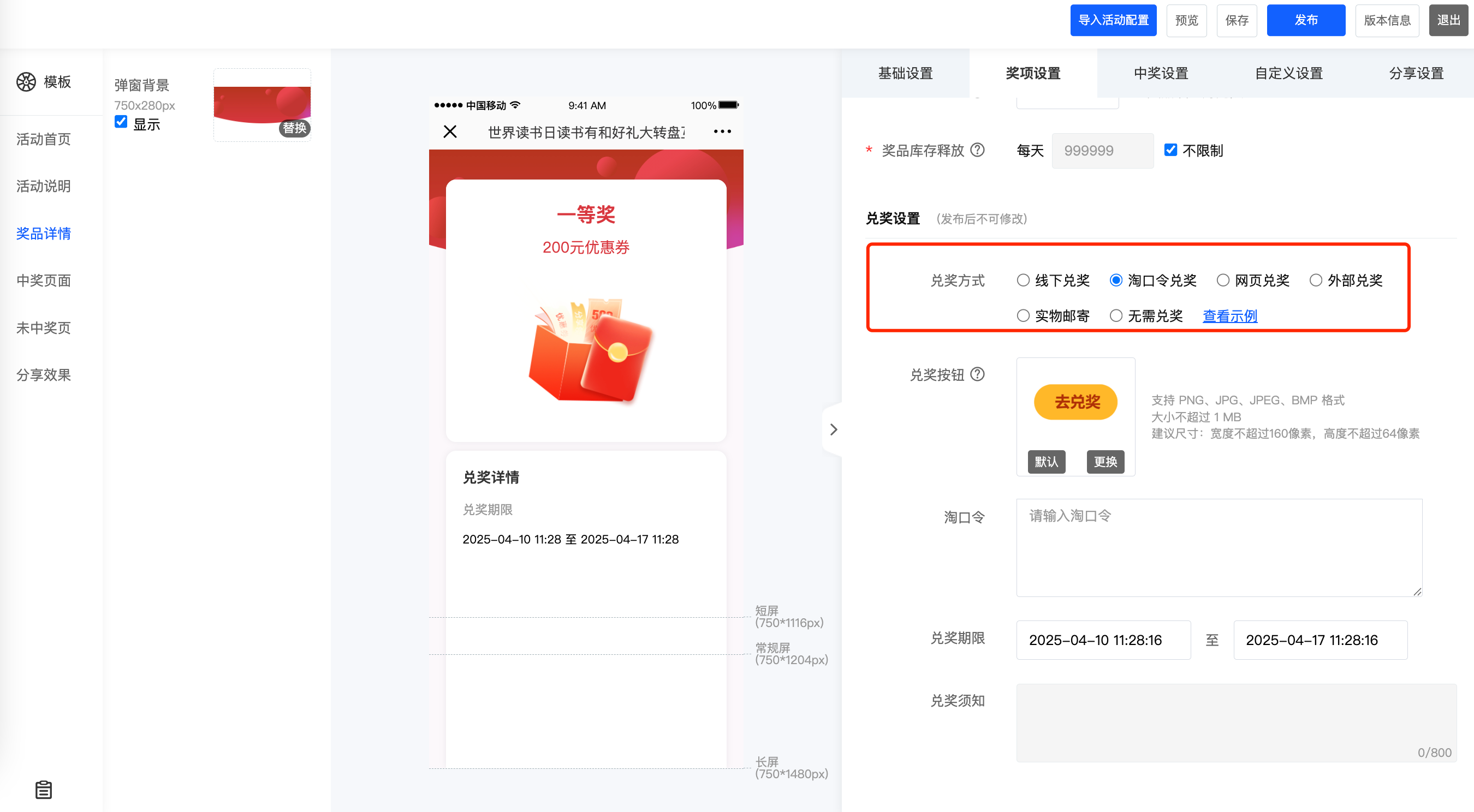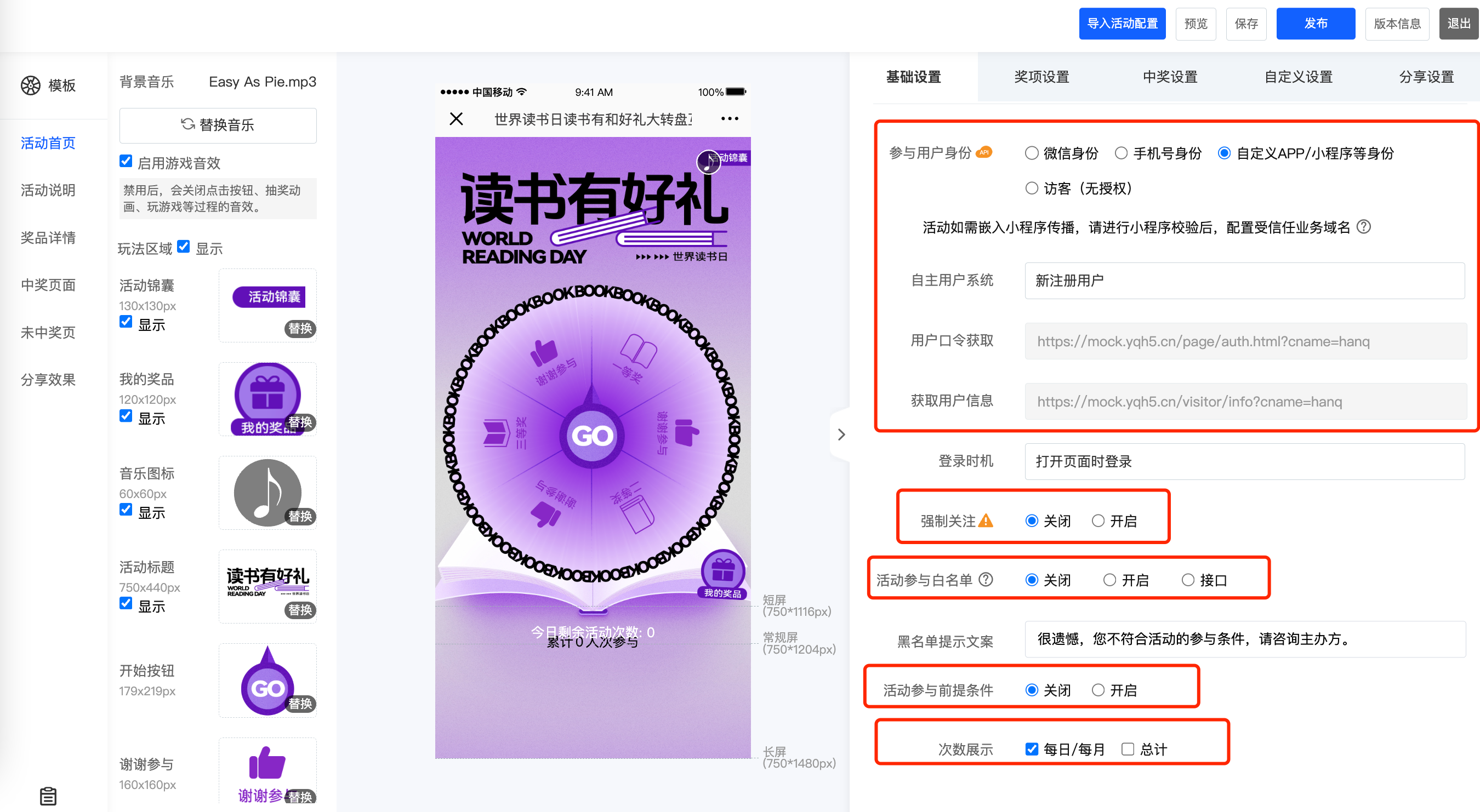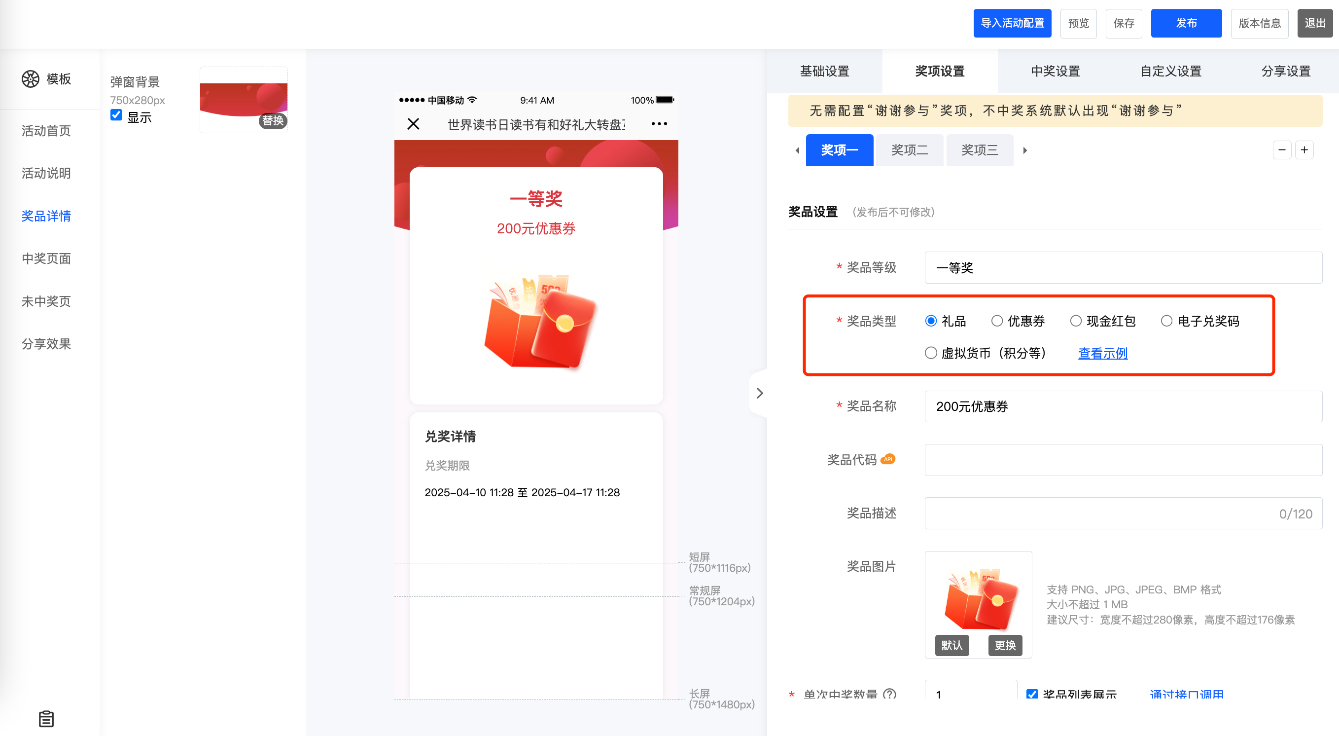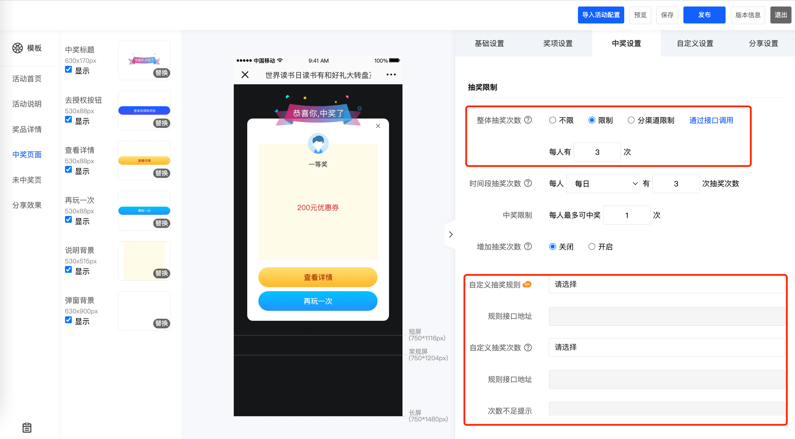 【功能上新-互动】新增基础设置、中奖设置、奖品设置等可配置隐藏字段