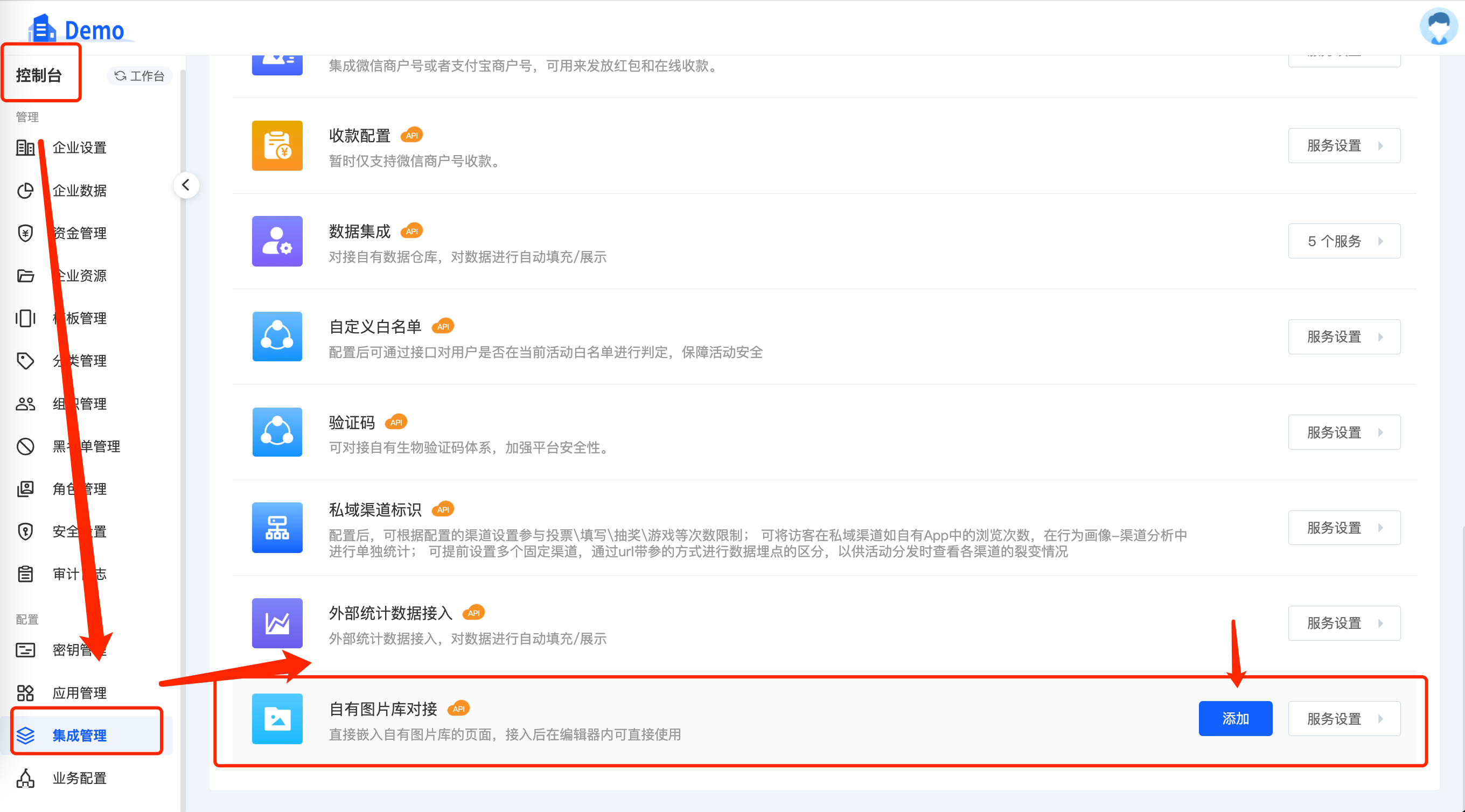 步骤①:集成管理自有图片库对接