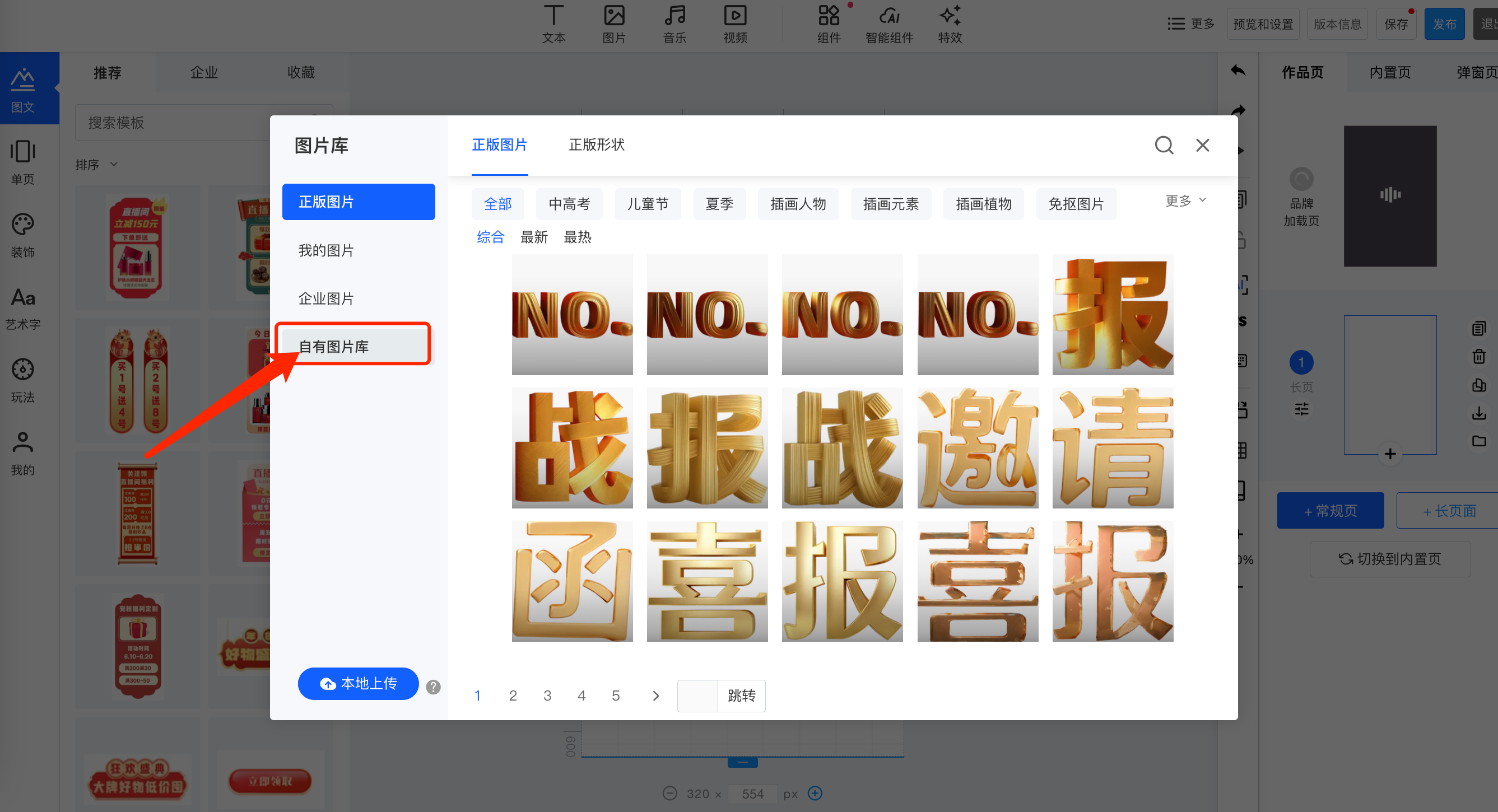 很多企业用户有自己的图片库,图片库中的图片数量很多,为了方便此类型的企业用户方便使用自有图片库,新增自有图片库对接功能;