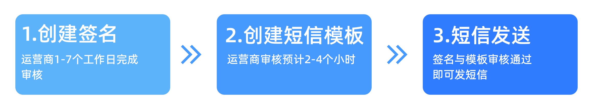 短信发送流程:其中第一步创建签名(短信签名)为非必要步骤,如不需要使用自己公司名称,则默认使用短信签名为【易企秀支持】。从第二步创建短信模板开始即可