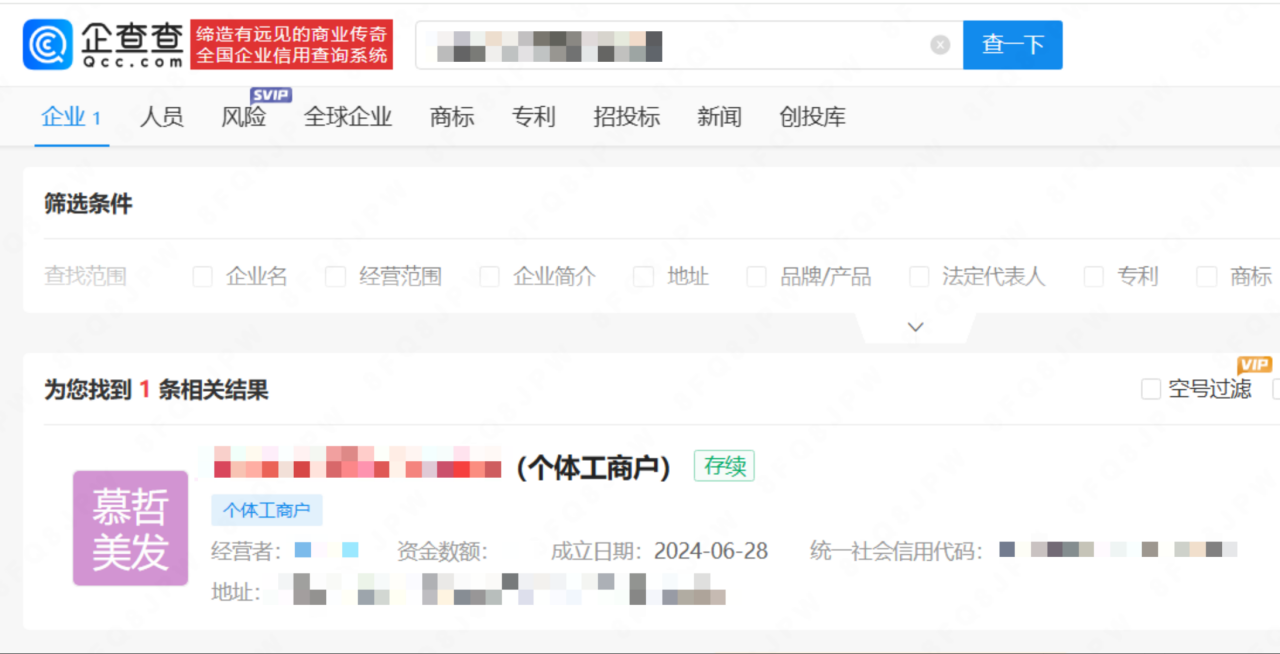 如需选择简称的,需要提供企查查简称查询唯一性截图。截图示例图如下
