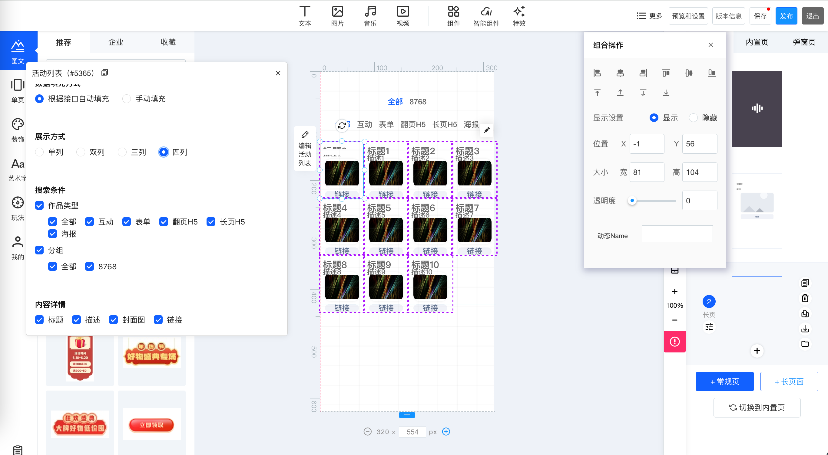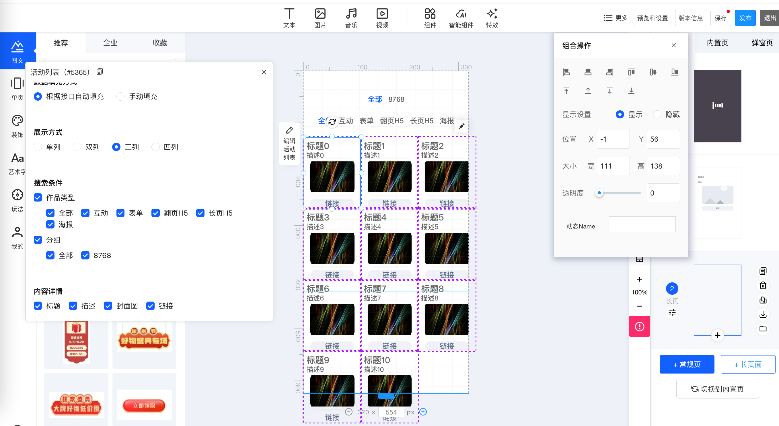 步骤④:设置活动列表组件