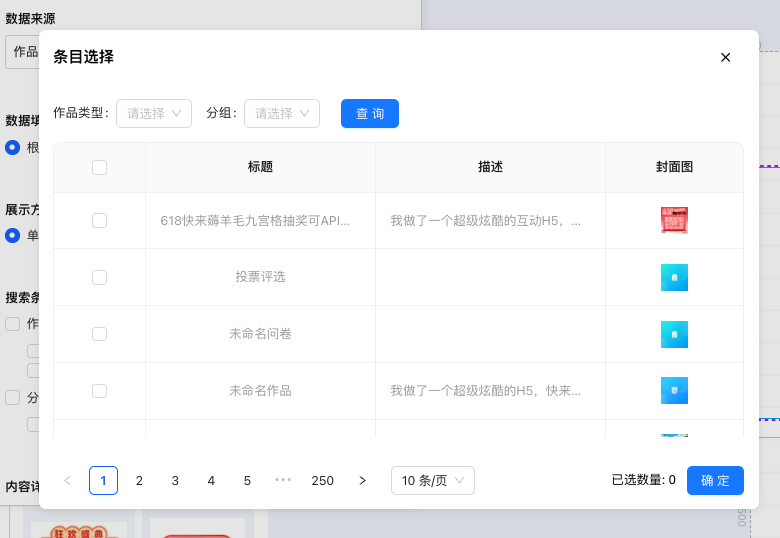 系统默认设置了一个系统作品列表的接口,如果是展示本企业的企业作品列表,则无需在集成管理中进行配置,直接在编辑器中选择使用即可;