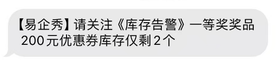 接收手机号会在库存剩余个数时收到预警短信,如下