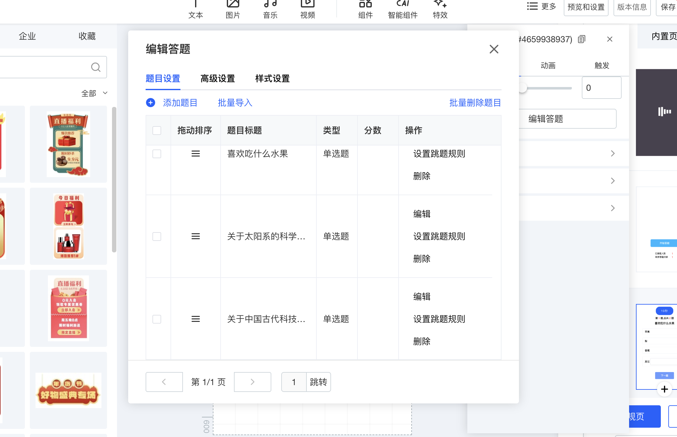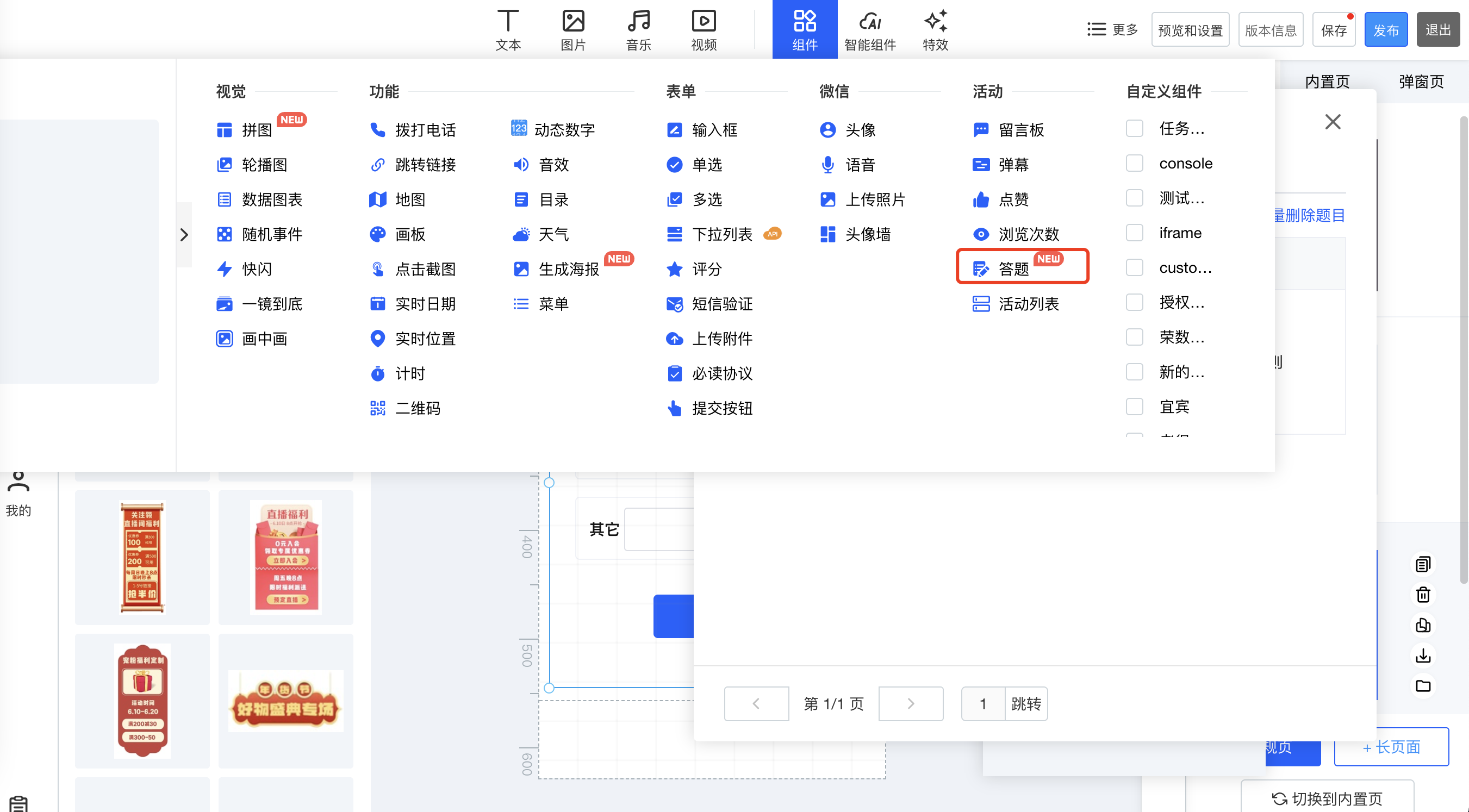 步骤③:在玩法中添加答题组件