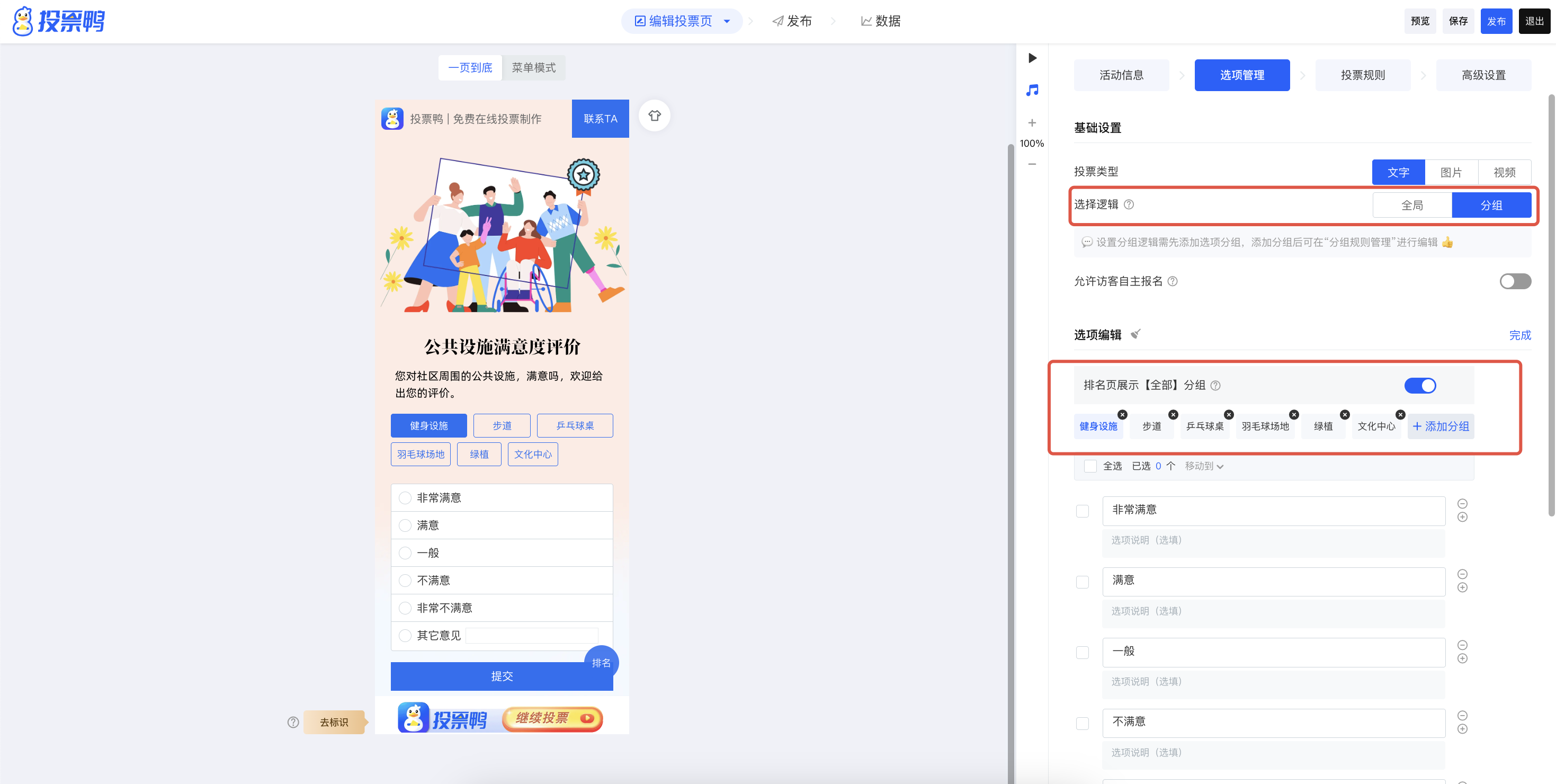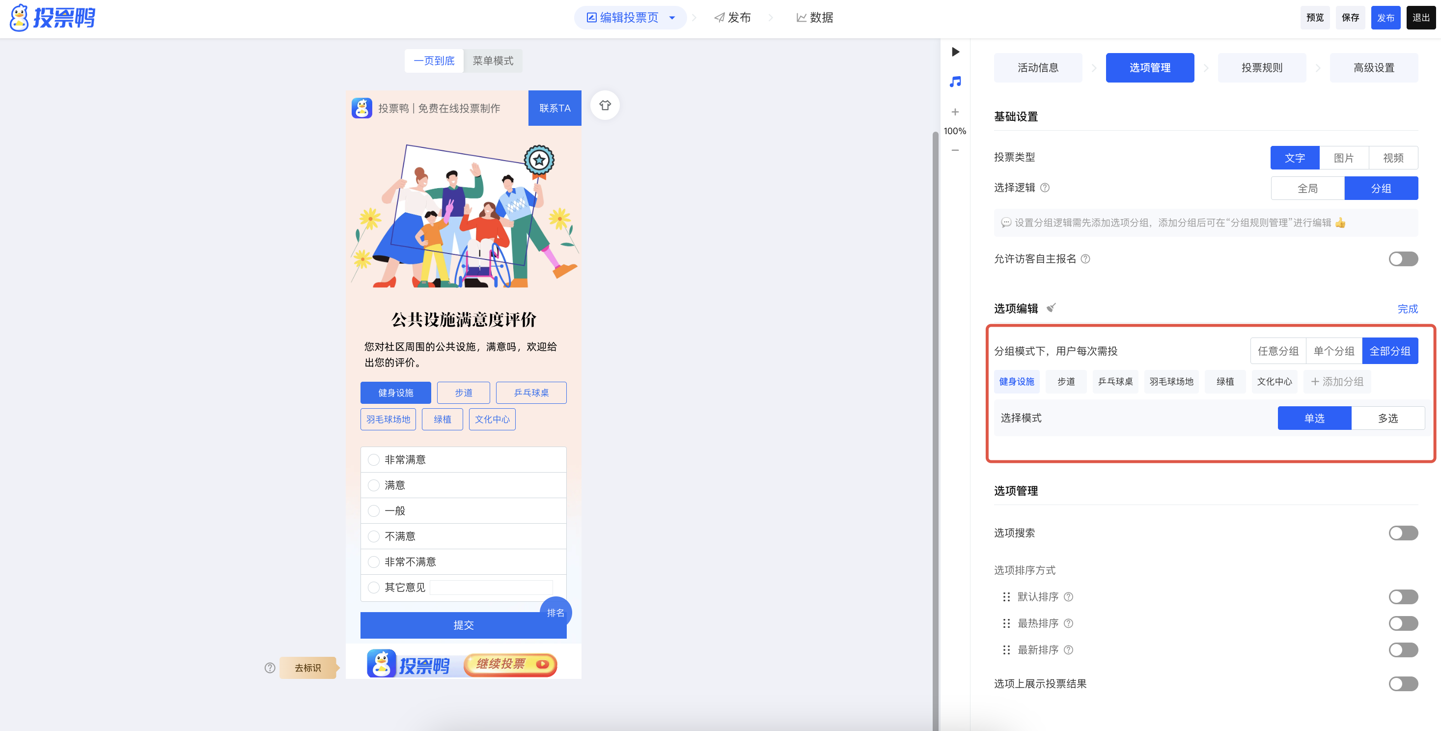 如果你想用投票鸭以投票的形式,面向多个对象开展一些评价活动,那么通过“分组”投票来实现!