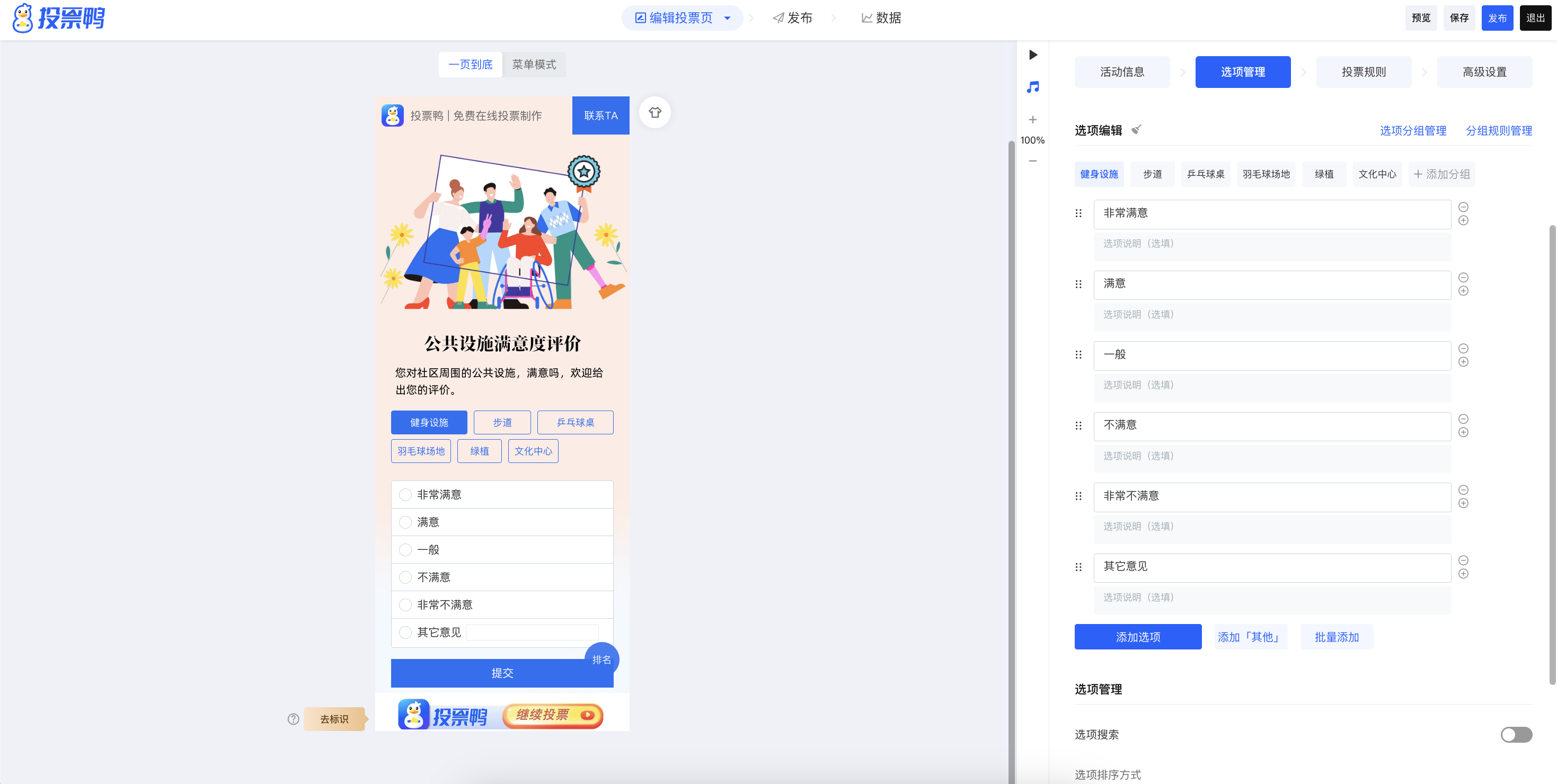 最后,可参考截图,关闭一些不必要的内容显示——排序、排名、报名、倒计时等信息,这样一个评价活动就做好了!