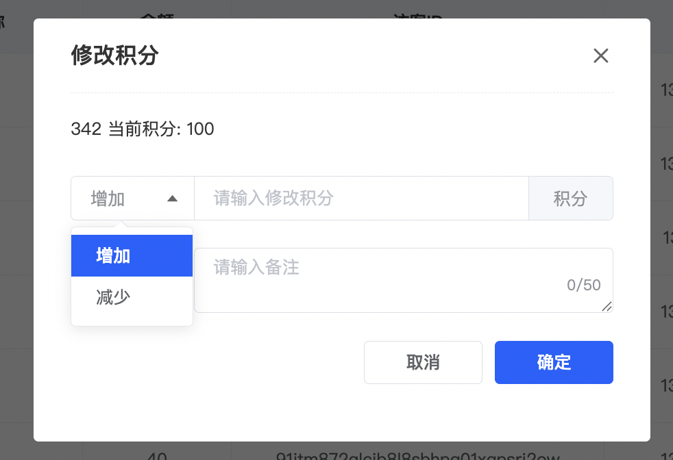 进入积分页面,点击右上角启用按钮,点击下方添加按钮,添加积分系统