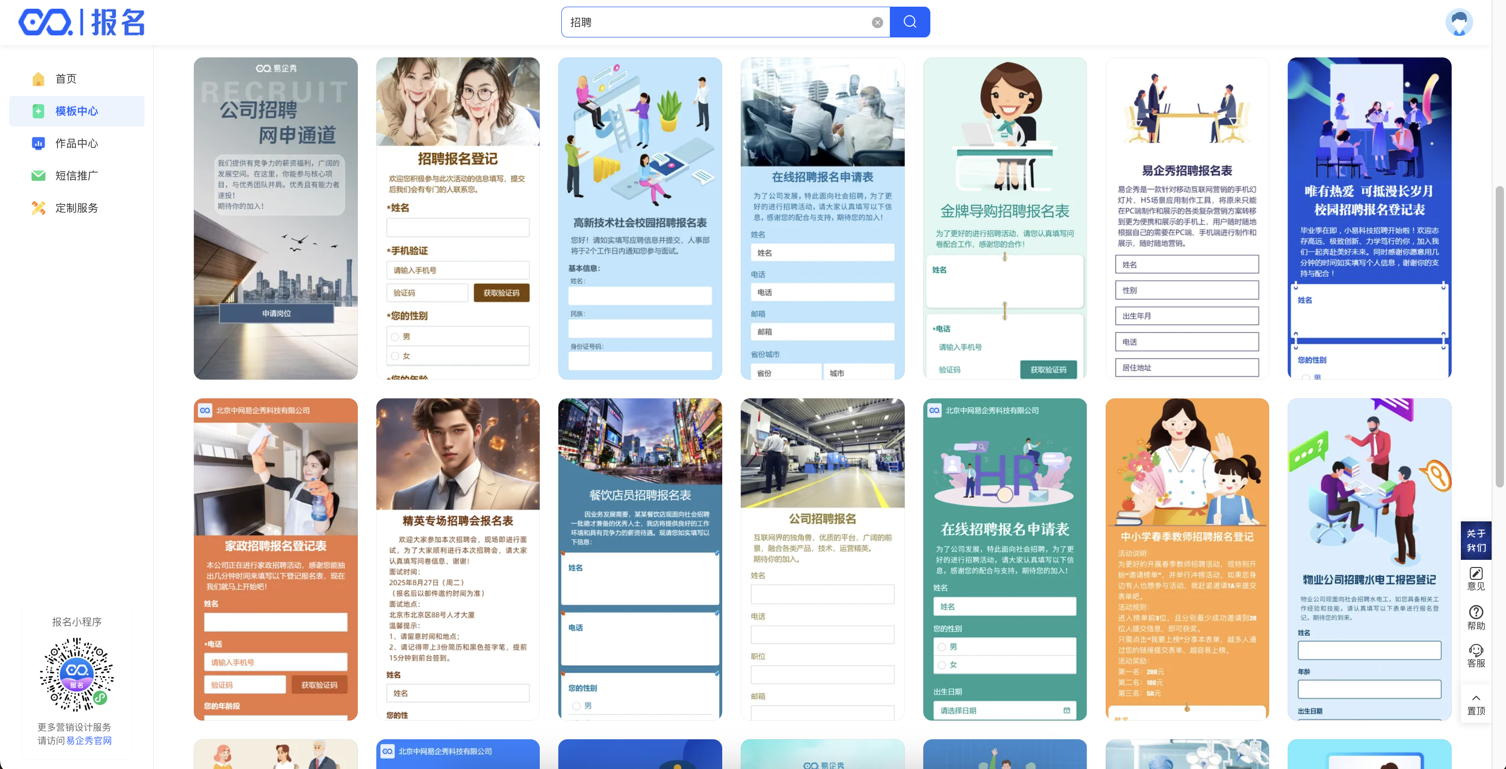 1、进入易企秀报名首页,搜索关键词【招聘】,选择你喜欢的招聘模板。