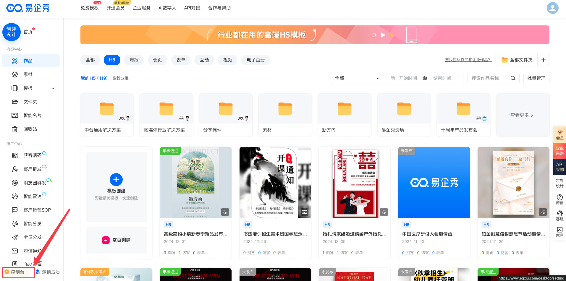 注意事项:目前仅支持移交海报、H5、长页三类作品